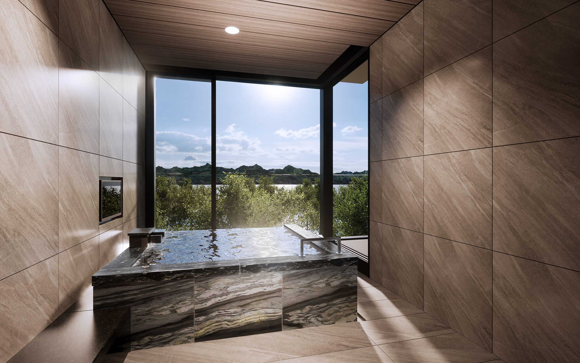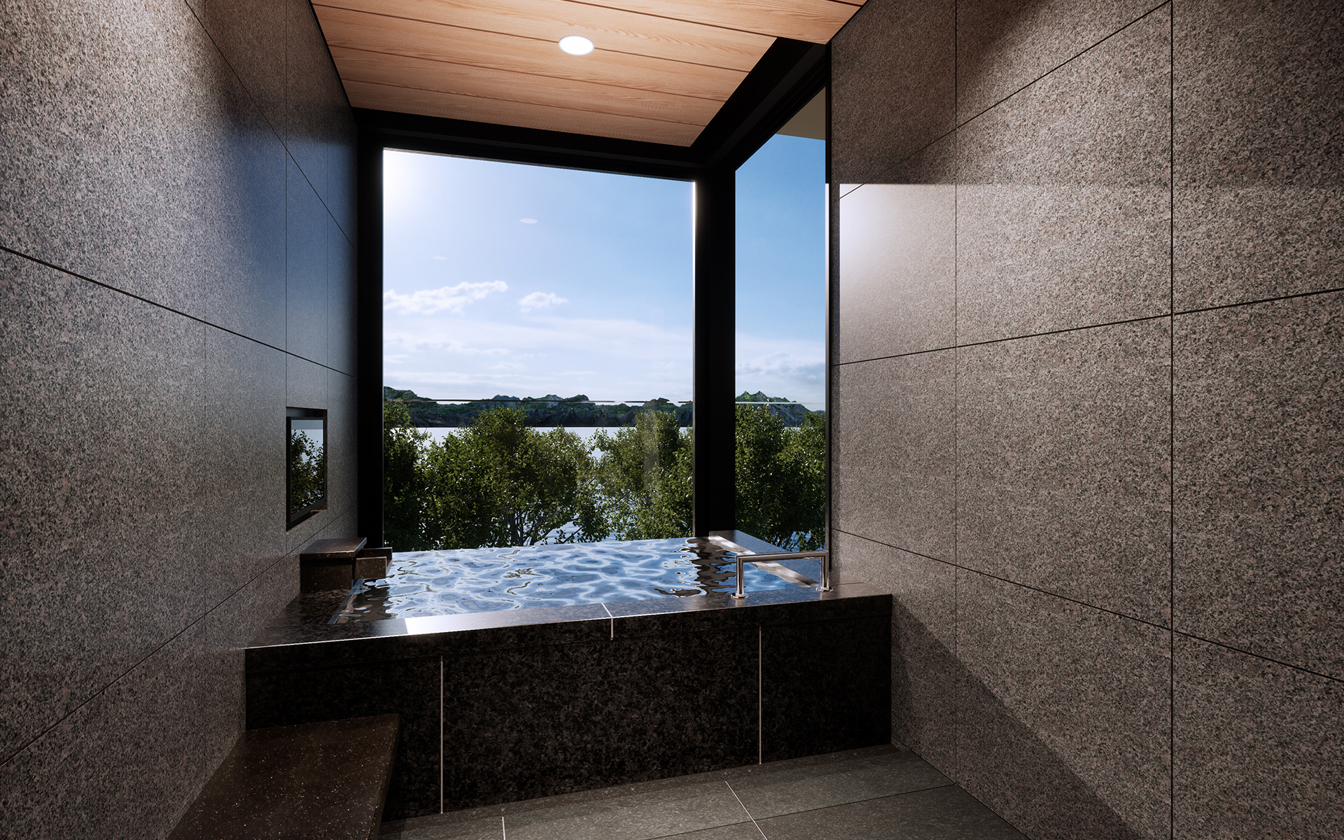 開放的で眺望も美しく、まるで露天風呂のよう。