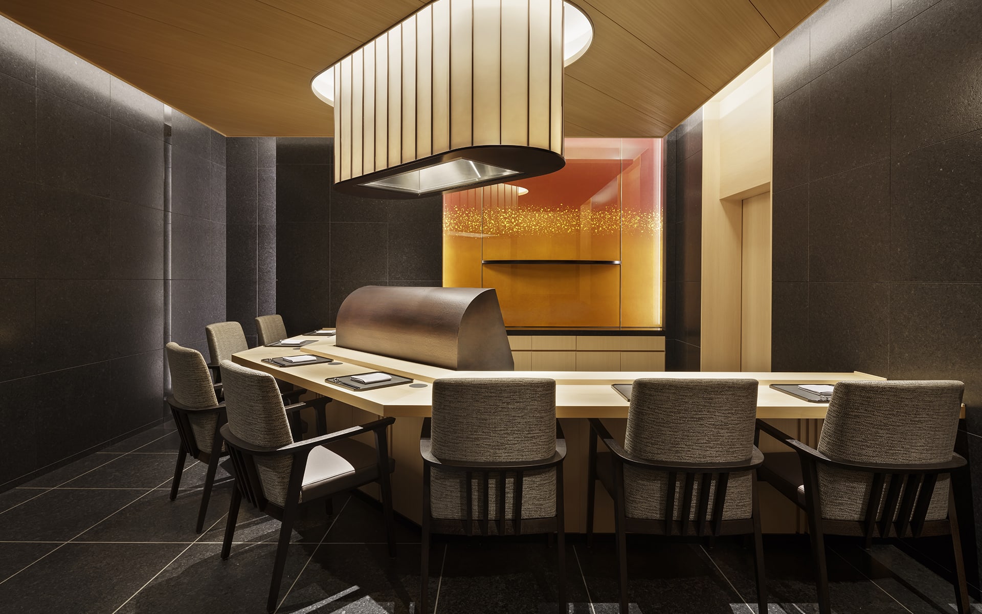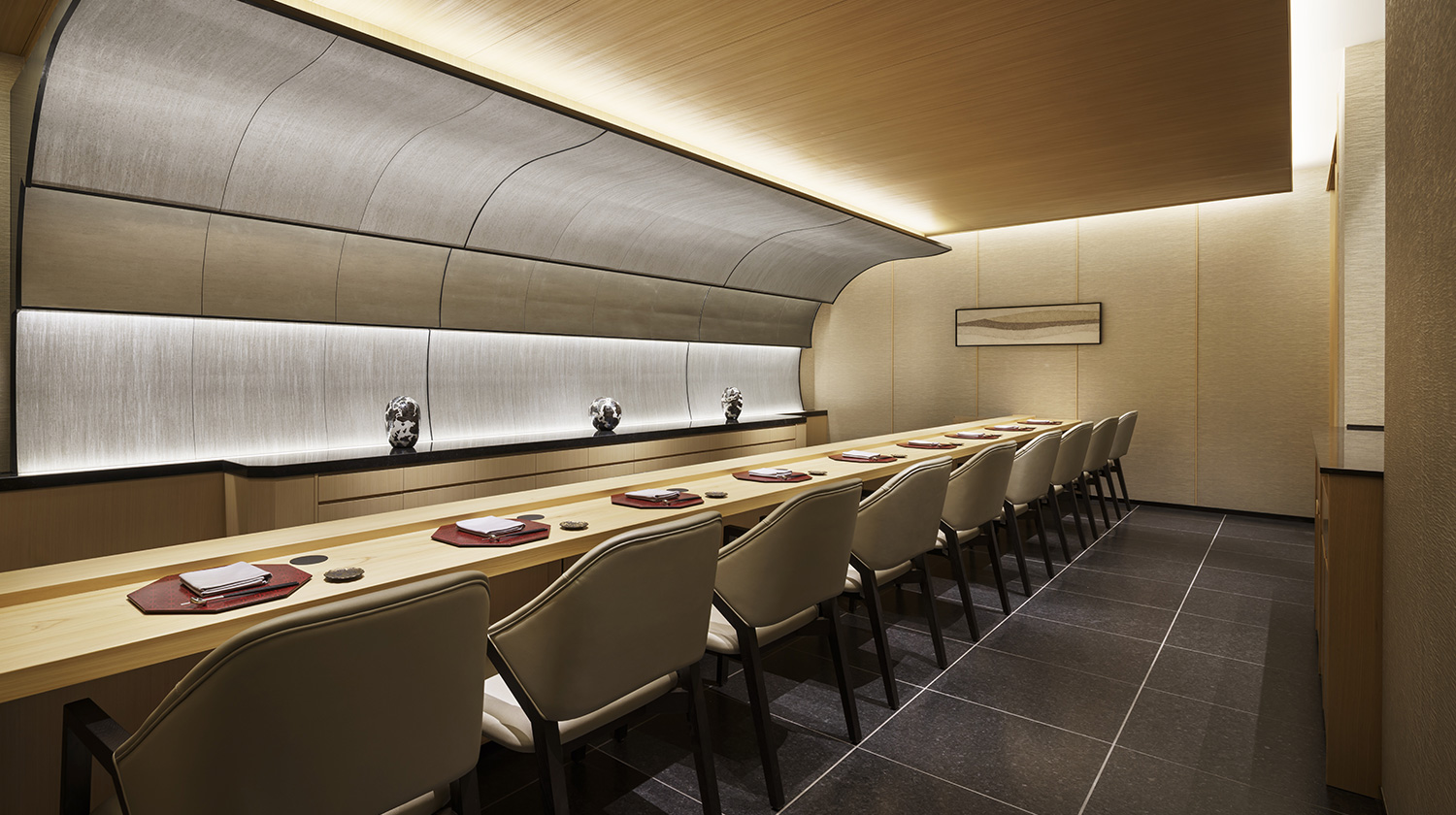 檜のカウンターにつくと、