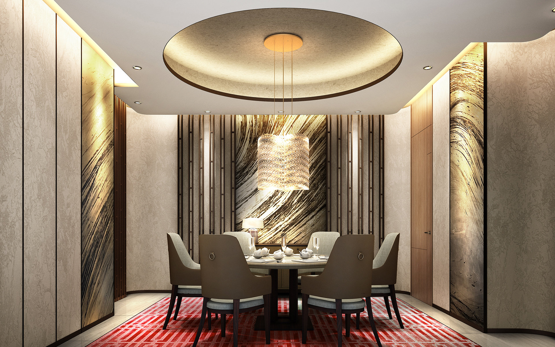 カーブした箔天井や煌めくシャンデリアなどエレガントなラグジュアリー空間で、