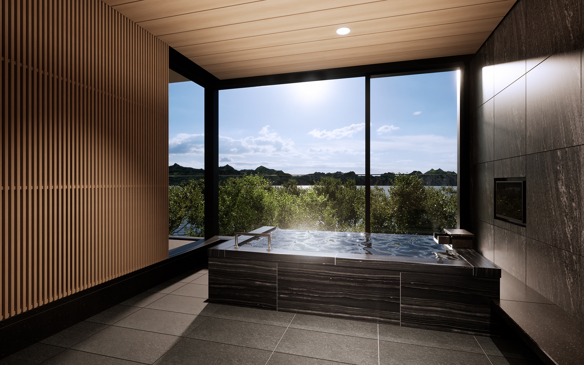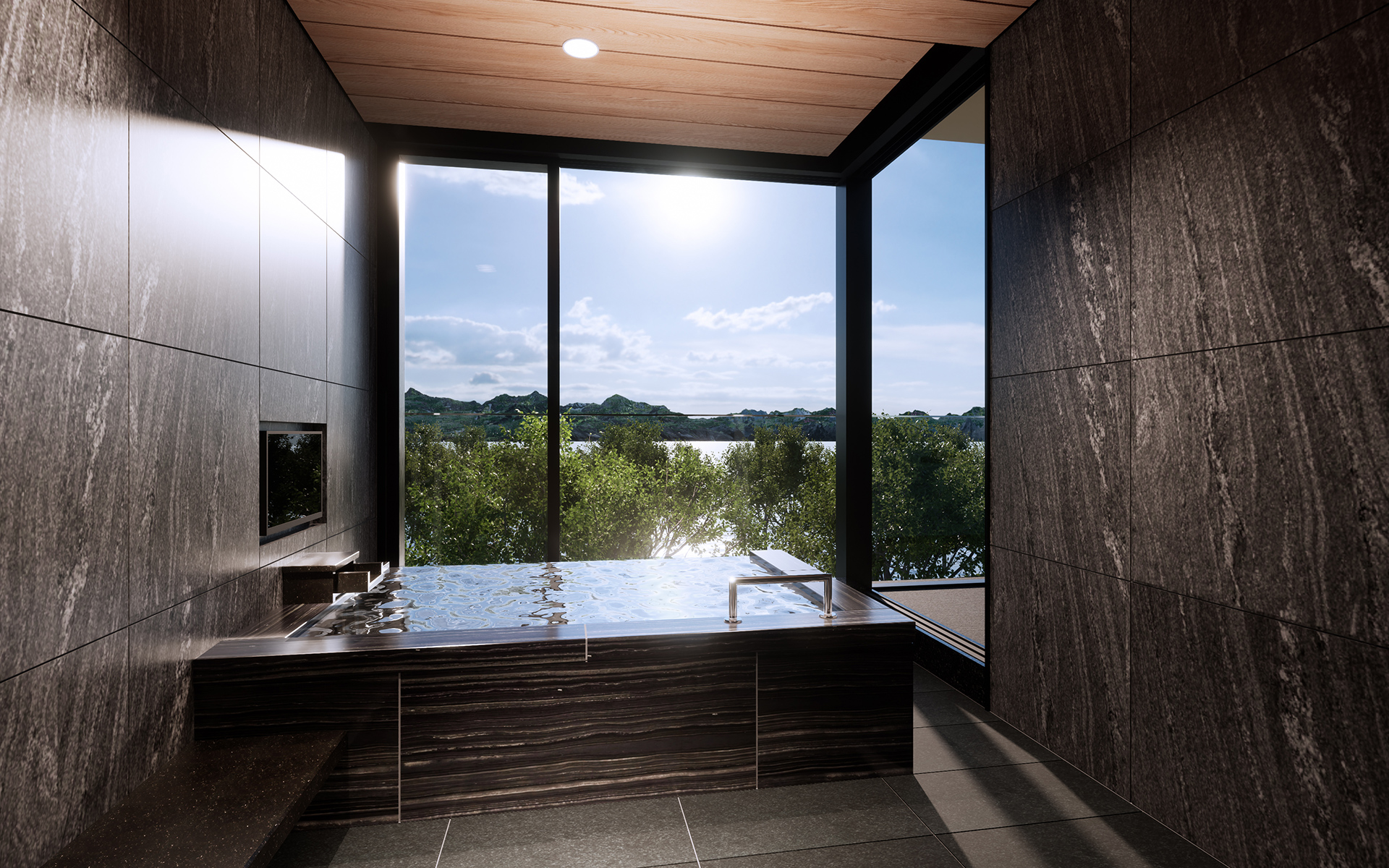 開放的で眺望も美しく、まるで露天風呂のよう。