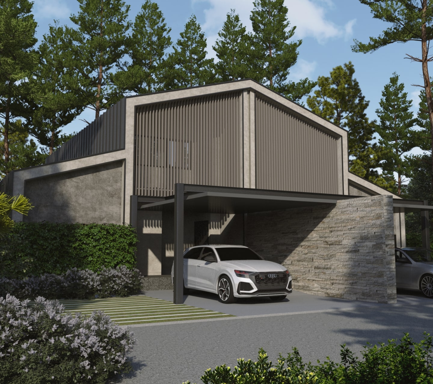 森の緑が一層引き立つよう、ダークな木調で落ち着いた高級感あるインテリア、大開口の窓、二層吹き抜けの空間が、別世界のレジデンスを創出します。
